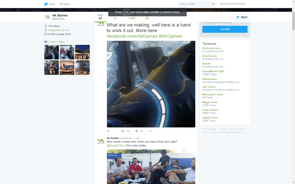 4A Games ha legato la propria fama alla serie di Metro, lo shooter post-apocalittico tratto dalla serie di libri di Dmitry Glukohsvy. Recentemente con un tweet il team di sviluppo ha annunciato di essere al lavoro su un nuovo titolo! Per stimolare la nostra curiosità, prima è stato postato su Facebook un’immagine 3D degli uffici, dove compariva un orologio intento in un conto alla rovescia, facendo presagire un annuncio imminente. Guardando attentamente si notavano diversi dispositivi di Oculus, che potrebbe indicare un’incursione nel mondo del VR; ma il tutto ha preso corpo dopo il citato tweet
