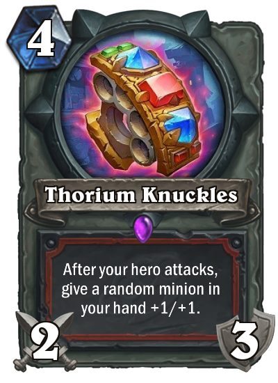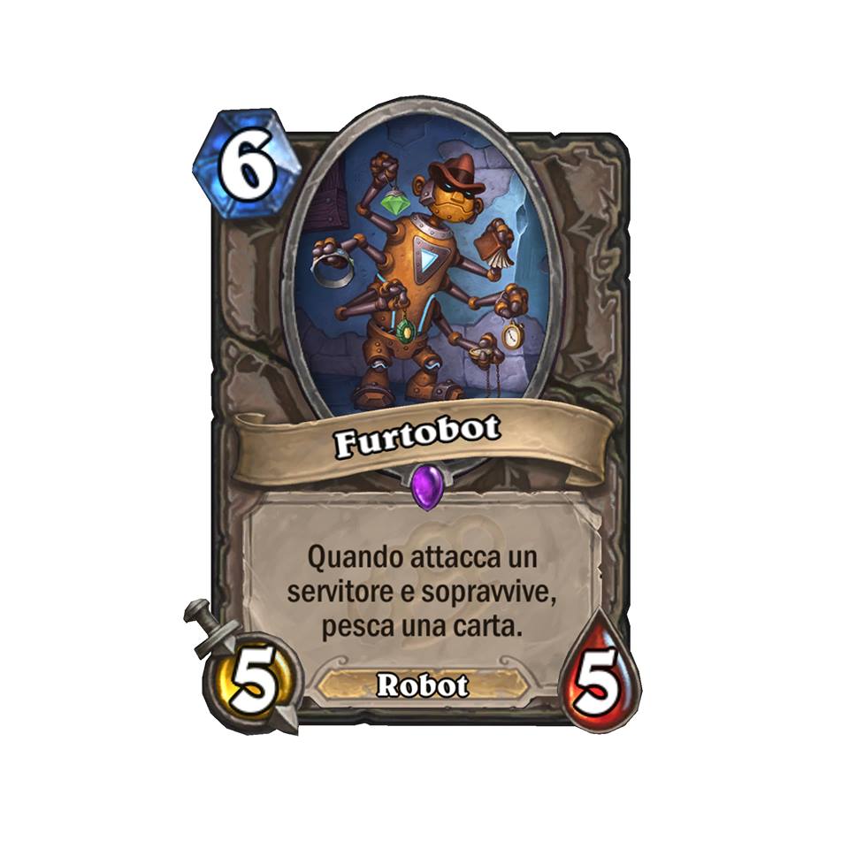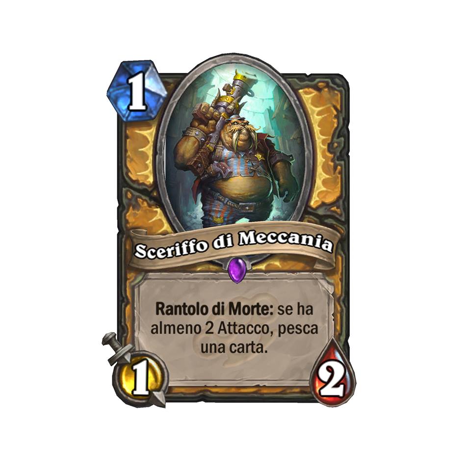 Carte totali: 132 Carte rivelate: TBD Data di rilascio: inizio Dicembre Data annuncio: 4 Novembre 2016 — I bassifondi di Meccania introdurrà anche una nuova meccanica in Hearthstone, le carte Tri-classe, (vedi l’icona sotto il costo in mana).
