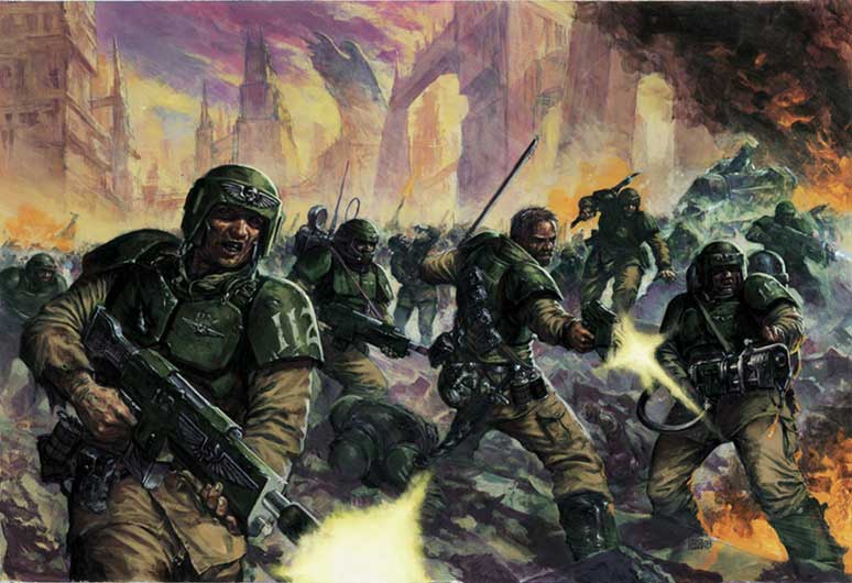 Il fiore all’occhiello delle forze armate Cadiane sono, senza dubbio, i suoi Shock Troopers, i Reggimenti di Guardie Imperiali conosciuti in ogni angolo dell’Imperium e stimati anche dagli stessi Adeptus Astartes, che hanno avuto modo di constatarne il valore e la preparazione direttamente sul campo.