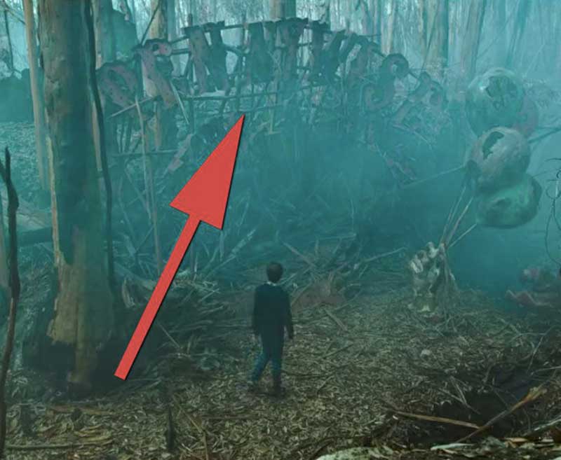 Sotto la parola “Pennywise” si trovano alcune detriti di quello che doveva essere un Circo. A destra c’è una struttura semi distrutta di una mano che tiene alcuni palloncini.