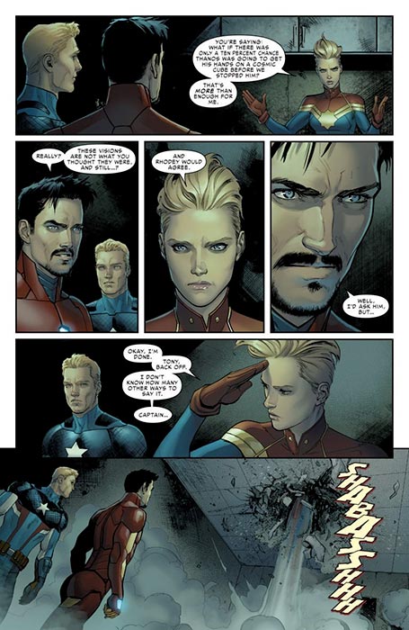 Bendis ha costruito il crescendo di Civil War II in modo perfetto, basandosi non tanto sulla divergenza degli schieramenti, ma lavorando in modo curato e molto intimo sulla difficoltà di Tony Stark; non va trascurato il fatto che Bendis sia al lavoro anche sulla seria solista dell’eroe in armatura, ma il modo in cui fa gravare questa responsabilità sulle spalle di Stark è trasmessa in modo credibile, incredibilmente umano. Il suo apparente stato di depressione, la sua incapacità di prendere una decisione finale in questa situazione lo spinge ad evitare errori passati, confrontandosi anche con coloro che sono di visione opposta, in modo da evitare un ripetersi dei drammi vissuti nella prima Civil War. Ma l’incontro non va come sperato (con un Cap che al momento non sappiamo quanto sia davvero lui, visto l’attuale situazione con l’Hydra), e arriviamo al punto di rottura, con quella che si prospetta una battaglia epocale nel prossimo numero.