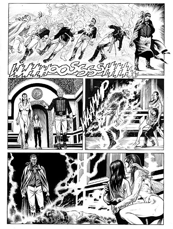 E qui, devo dire che ho visto le tavole migliori dell’albo! Il combattimento tra i carpaziani e gli indigeni alati è veloce e brutale. E i disegni rendono meravigliosamente la scena, sia in termini di dinamismo che come crudezza, lo scontro è sanguinario, e i disegni rendono giustizia alla cosa. La cosa però, volge poi al peggio, rivelando il vero mandante dell’attacco.