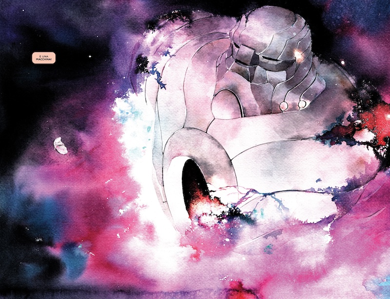 Questo ultimo sotry-arc, “La guerra delle macchine”, risponde a tanti dei quesiti che Jeff Lemire aveva lasciato in sospeso durante i precedenti cinque volumi, tra cui anche il perché del nome “Descender”. Ma questo finale non è un lungo spiegone, anzi, prevede una narrazione al cardiopalma e la tensione è palpabile: macchine e uomini si apprestano ad una battaglia che può prevedere un solo vincitore… ma chi è il vincitore morale in tutto ciò? Durante tutta la serie Lemire ci dà modo di approfondire i punti di vista di entrambi le fazioni, ma senza mai riuscire a farci preferire l’una o l’altra e ciò è voluto. Non c’è chi ha ragione o chi ha torto in una guerra, questa è solo violenza perpetrata da ambi i fronti. In questo ultimo volume l’autore canadese ci avvicina alla soluzione, che non è altro che una via di mezzo: una società dove macchine e uomini convivono come pari, ma la società raccontata in Descender è ancora lontana da questo risultato. Ci sarà il tempo di porre rimedio agli errori del passato? O è troppo tardi?