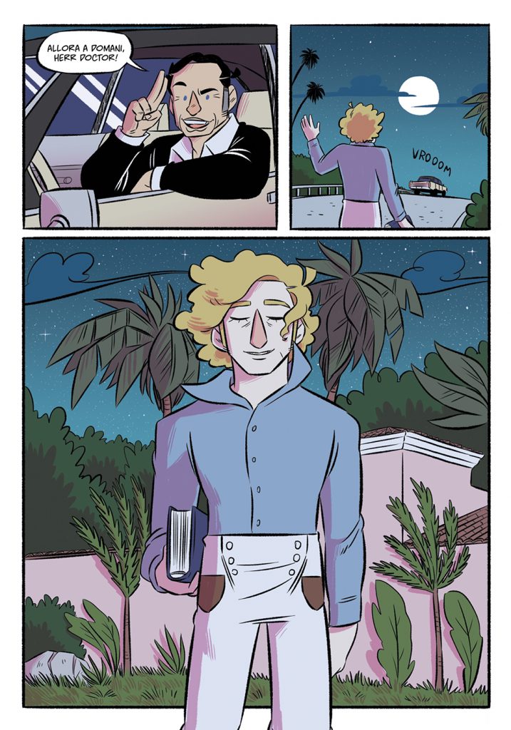 Riguardo il tuo scenario immaginario qualcuno ogni tanto mi scrive in privato chiedendomi se farò mai qualcosa di simile ad esempio, chessò, con Paolo Villaggio dato che parlo spesso dei suoi film più popolari, sono una grande fan della scena comica italiana vintage. Ci sono molti attori e registi che amo, ma artisticamente non mi piace fossilizzarmi su un solo tipo di storie. L’anno scorso ho raccontato la mia avventura col cancro, l’anno prossimo uscirà l’avventura di Gene e Mel col cinema… La prossima volta, chi lo sa, potrebbe essere una nuova avventura ancora. È il bello di essere narratori!