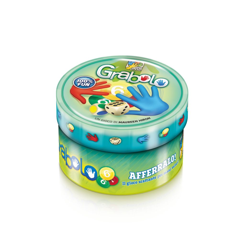 In Grabolo ogni giocatore al suo turno lancia i dadi, uno per il colore, l’altro per il numero. Il primo che afferra la carta del colore e del numero giusto tra quelle sparse sul tavolo, può aggiungerla al suo mazzo di prese. Se la carta non è più sul tavolo, per conquistarla sarà necessario chiamare il nome dell’avversario che l’ha già presa. Chi per primo raccoglie il numero di carte richiesto vince la partita.