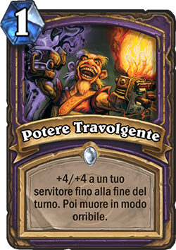 - Potere Travolgente consente di vincere scontri tra servitori anche usando solo quelli a basso costo, oltre a infliggere danni ingenti al costo di un solo Mana. Incorporare questa carta nel solo formato Selvaggio impedirà alcune combinazioni folli e picchi di danni esagerati. I mazzi dello Stregone tendono a usare molte carte Classiche, quindi cambiano di meno con l’uscita di nuove espansioni. Questo cambiamento aumenterà la varietà di carte presenti nei mazzi dello Stregone sulla lunga distanza.