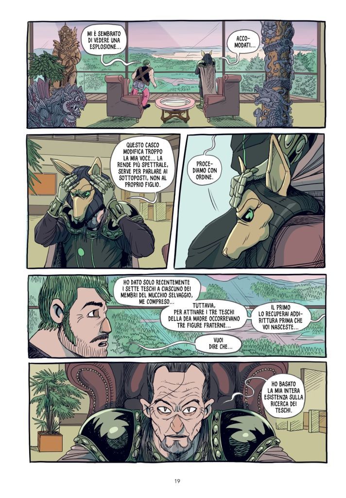 Kids With Guns di Capitan Artiglio torna con il secondo volume “Tribe” uscito lo scorso 14 marzo sempre distribuito da Bao Publishing. La bambina senza nome si sente sola e riparte alla volta del suo destino, finendo per diventare il capo di una banda di ragazzini sperduti. Nel frattempo ilfamigerato gruppo di criminali Il Mucchio Selvaggio, capeggiato da Bill “La Morte” Doolin, padre dei fratelli fuorilegge, mette sotto assedio Thunderat Town. I Teschi di Moloch che donano l’immortalità, in possesso dei tre fratelli Doolin, si rivelano una maledizione più che un vantaggio euna misteriosa catastrofe che potrebbe risucchiare il mondo sembra all’orizzonte. La trama inizia ad avviarsi verso la risoluzione. I momenti narrativi colmi di balloon sono intervallati da pagine completamente mute perché sono talmente piene di significati che non hanno alcun bisogno di appellarsi alle parole. Tavole che sono magnifiche illustrazioni che, prese a sé stanti, riescono a comunicare sia la storia di base che tutta un’altra storia, diversa ma ugualmente valida. Artiglio disegna diorami, vetrate di chiese, quadri, pupazzi 3D di dinosauri volanti e chi più ne ha ne metta: una goduria per gli occhi prima ancora che per la mente.