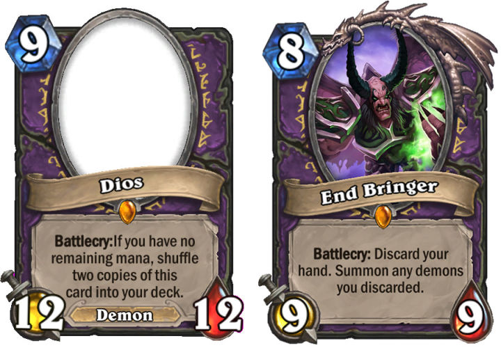 Dios è un altra sperimentazione sui turni infiniti come per Idolo di Giada, accantonata quando si virò sulle Pozioni, mentre End Bringer spinge su un Discard Lock a base Demoni. Probabilmente questa idea sarà ripresa in futuro. (Grido di Battaglia: se hai Mana non speso, metti due copie di questa carta nel tuo mazzo.