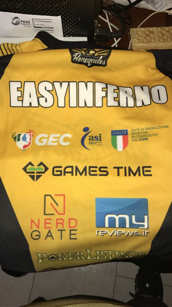 Finalmente il Team Renegades è degno di esser chiamato tale, i 6 player ufficiali indossano le nuovissime maglie del Team, maglie create da Brand Your Team che si occupa di ideazione, creazione, gestione e sviluppo dell’immagine di squadre di varia natura ed estrazione professionale. Dal grezzo disegno di bozza al più piccolo dettaglio esecutivo, portano le idee e le richieste dei clienti a compimento. L’alta personalizzazione e la cura per l’individualità contraddistinguono i loro prodotti dagli altri competitors, Nerdgate è sponsor ufficiale del team.