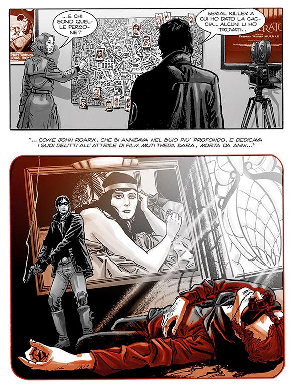 Alle matite in questo numero troviamo Luca Raimondo, che riesce a trasmettere con le sue tavole tutta l’atmosfera di Morgan Lost. Un tratto ricco ed incredibilmente realistico, in grado di rappresentare al meglio le espressioni dei personaggi, con un sapiente uso delle inquadrature che valorizza ulteriormente il tutto! Come sempre non mancano le citazioni al mondo del cinema, basti pensare ai due gemelli Ross che hanno le fattezza dell’attore Paul Giamatti o come il maggiordomo Sung della signora Porter ricordi , anche nel tipo di arma usata, al temibile Oddjobb, nemico di James Bond in Missione Goldfinger! Ormai in Morgan Lost non si può fare a meno di cercare la citazione del film, è troppo divertente e stimolante!