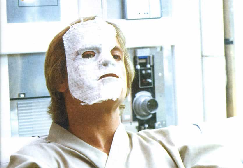 Per ovviare a questo problema, si scelse di inserire in L’impero colpisce ancora venne inserita la famosa scena della grotta del wompa, in modo da poter mascherare i segni di Hamill e motivare un viso in parte diverso da quello visto in Una nuova speranza!