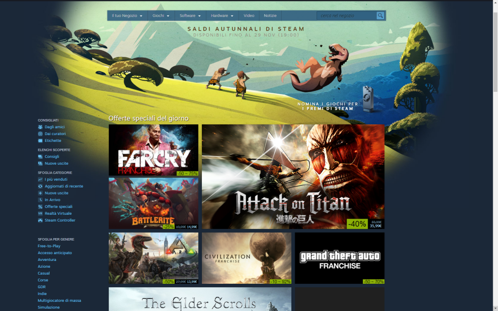 Il Black Friday non conosce limiti, ed oggi anche Steam, la piattaforma di digital delivery di Valve, inizia la sua personale campagna di sconti! Numerosi i titoli disponibili in questa sessione di sconti autunnali, con alcuni dei più interessanti franchise disponibili messi a disposizione dei clienti a prezzi molto interessanti!